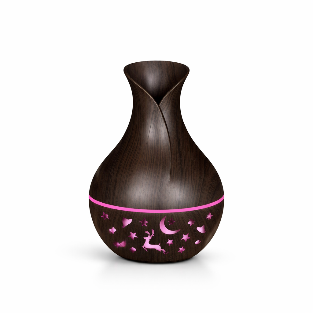 Elegantne aroomidifuuser, mis ühendab pehme LED-valguse ja eeterlike õlide aroomi, et luua ruumi rahu ja tasakaal.